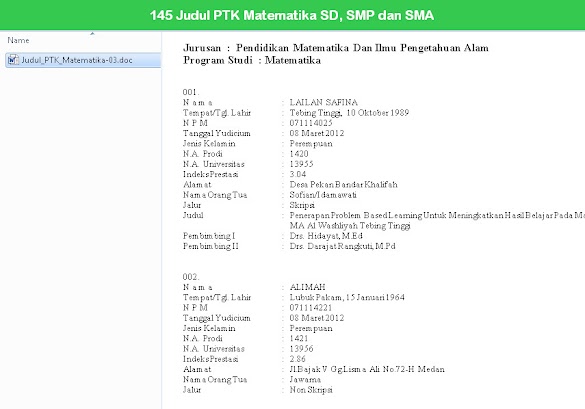 Selengkapnya silahkan download file berikut: 145 Judul PTK Matematika.doc