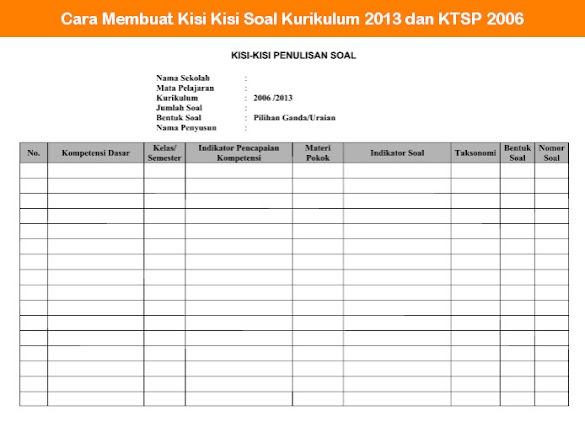 Jika kita perhatikan berarti kesimpulannya yaitu di dalam format tersebut terdapat beberapa kolom sesuai dengan apa yang telah hingga di atas (8 Poin), bahwa ternyata format dalam penulisan kisi-kisi soal yaitu sama, jadi sanggup dipakai untuk Kurikulum 2013 maupun KTSP 2006.