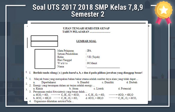 Demikian itulah tadi menu info dari kami wacana Soal UTS 2017 2018 Sekolah Menengah Pertama Kelas 7,8,9 Semester 2 lengkap. Mudah-mudahan sanggup memudahkan Bapak dan Ibu Guru serta adik-adik untuk sanggup melakukan ujian di sekolah dengan lancar.Semoga bermanfaat.